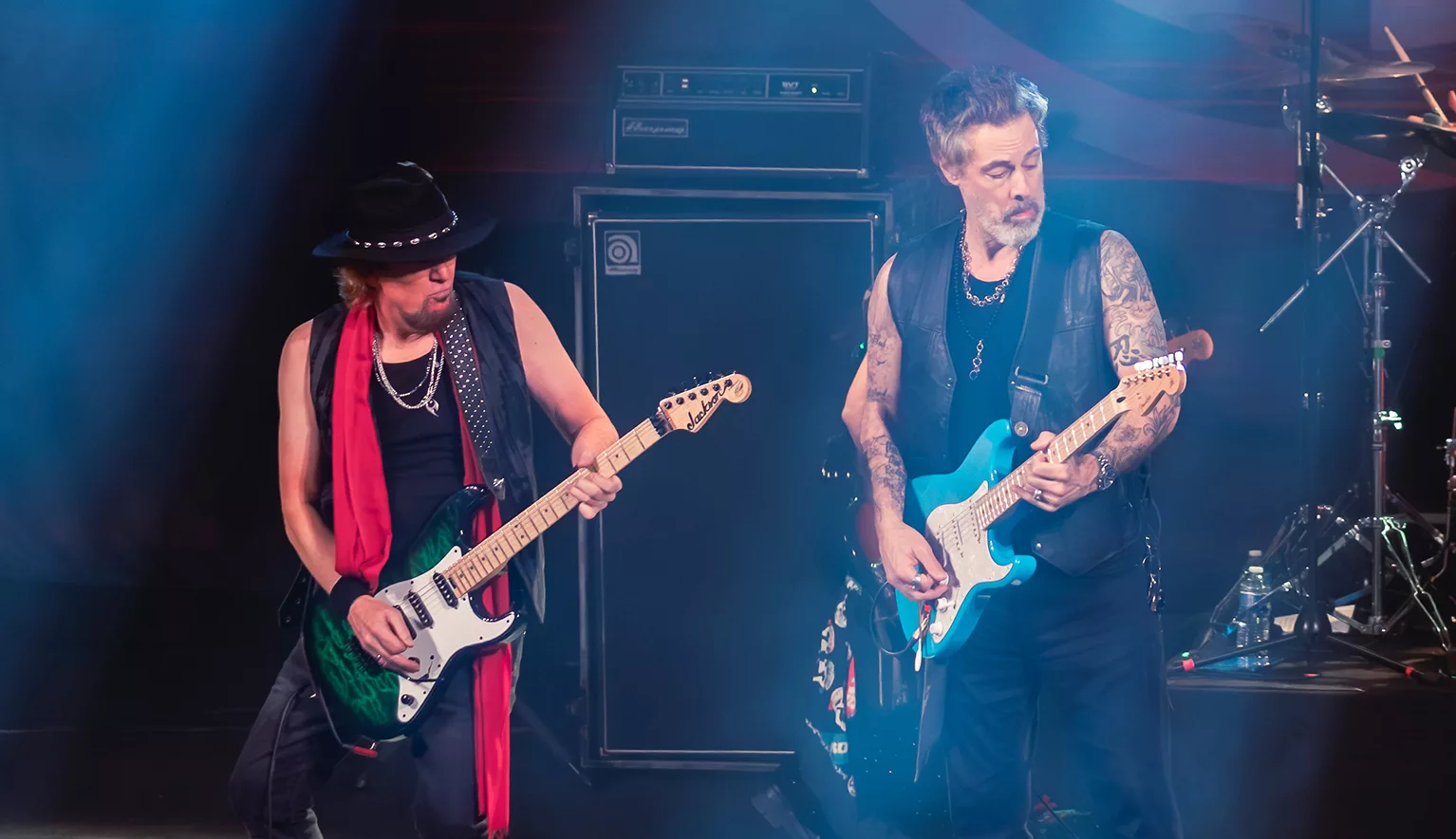 “Life Unchained” et “Black Light” enchaînent sans respirer. Le groove est massif, les guitares se croisent, se défient, se répondent. Kotzen, félin, nerveux, occupe l’espace avec une aisance presque insolente. Smith, plus ancré, plus terrien, sculpte chaque riff comme s’il taillait la pierre. Avec “Wraith” et “Glory Road”, le set prend de l’ampleur. Les deux voix se frottent, se complètent, se cherchent. Kotzen monte, sature, frôle la rupture ; Smith arrondit, creuse, raconte. Deux grains, deux mondes, une seule vibration.